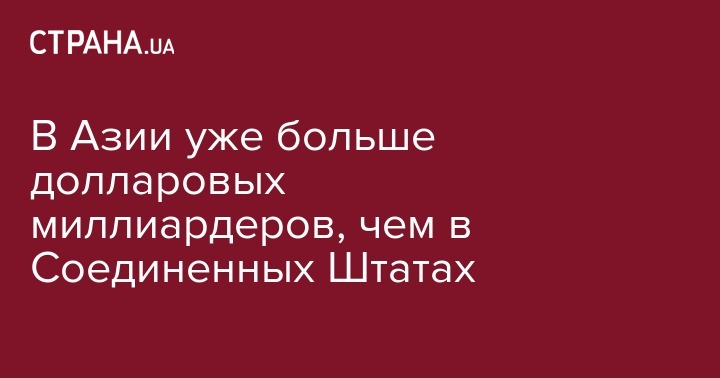 В 2016 году государства Азии обогнали США по количеству долларовых миллиардеров. Об этом передает Bloomberg со ссылкой на исследование финансового холдинга UBS Group.