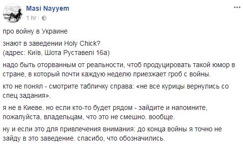 Возмутился и Маси Найем, брат народного депутата Мустафы Найема, в своем Facebook.