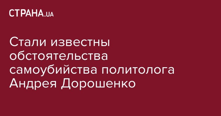 Как сообщала "Страна", сегодня в Соломенском районе Киева с девятого этажа выпал политолог Андрей Дорошенко. По предварительным данным, таким образом мужчина решил покончить жизнь самоубийством. Однако эта версия пока не подтверждена полицией. Дорошенко работал в фонде Правовых передовых инициатив. Последнюю структуру в политологических кругах связывают с Виктором Медведчуком