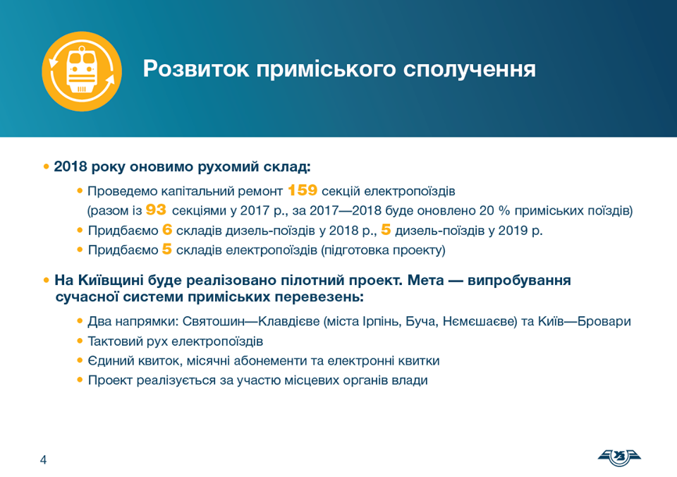В планах на 2018 год - реконструкция 300 км путей на направлениях Киев-Одесса и Киев-Львов. Также должны быть обновлены 309 стрелочных переводов.