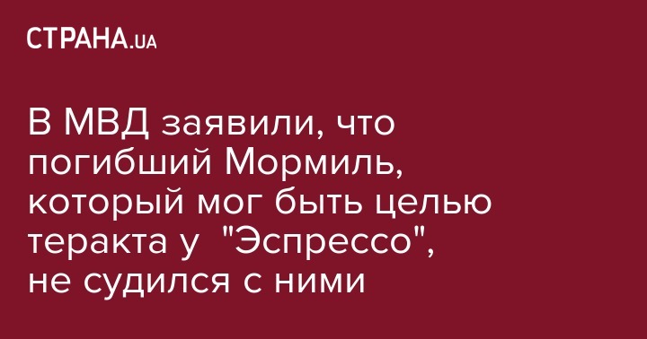 В Министерстве внутренних дел Украины заявили, что их экс-сотрудник Михаил Мормиль, который погиб во время взрыва в Киеве 25 октября, не судился с МВД. Об этом сообщил глава департамента коммуникации МВД Украины Артем Шевченко.