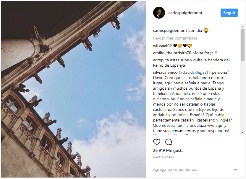 Подписчики отстраненного Мадридом президента Каталонии Карлеса Пучдемона в социальной сети Instagram пытаются разгадать смысл его новой фотографии. Если в ней вообще есть скрытый смысл.