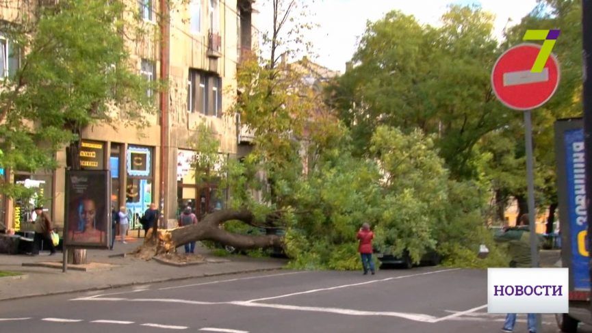 Утром понедельника, 30 октября в Одессе по улице Жуковского огромное дерево упало прямо на поток двигавшихся машин. В результате инцидента движение транспорта было полностью заблокировано.