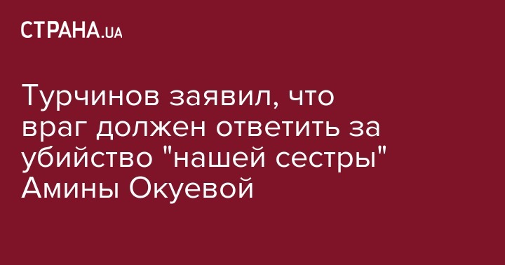 Турчинов заявил, что враг должен ответить за убийство "нашей сестры" Амины Окуевой