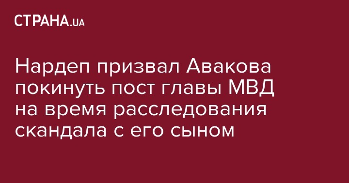 После того, как стало известно о обысках у сына министра внутренних дел Арсена Авакова Александра и его задержании, среди депутатов парламента раздаются призывы отстранить главу МВД от должности на время расследования.