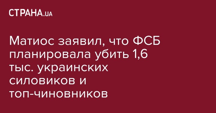 Главный военный прокурор Анатолий Матиос заявил, что спецслужбы России планировали убить 1,6 тыс. украинских правоохранителей и высших госчиновников. Об этом он сказал в ходе брифинга, который транслировал "112 Украина".