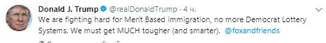 "Мы боремся за основанную на заслугах иммиграцию, больше не будет демократических лотерейных систем. Мы должны стать намного более жесткими и умными", — написал Трамп.
