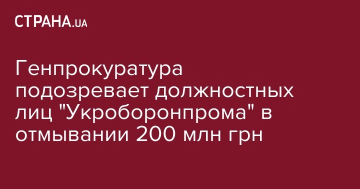 Генеральная прокуратура Украины подозревает должностных лиц государственного предприятия "Укроборонпром" в отмывании 200 млн гривен ($7,4 млн) из оборонного бюджета страны.