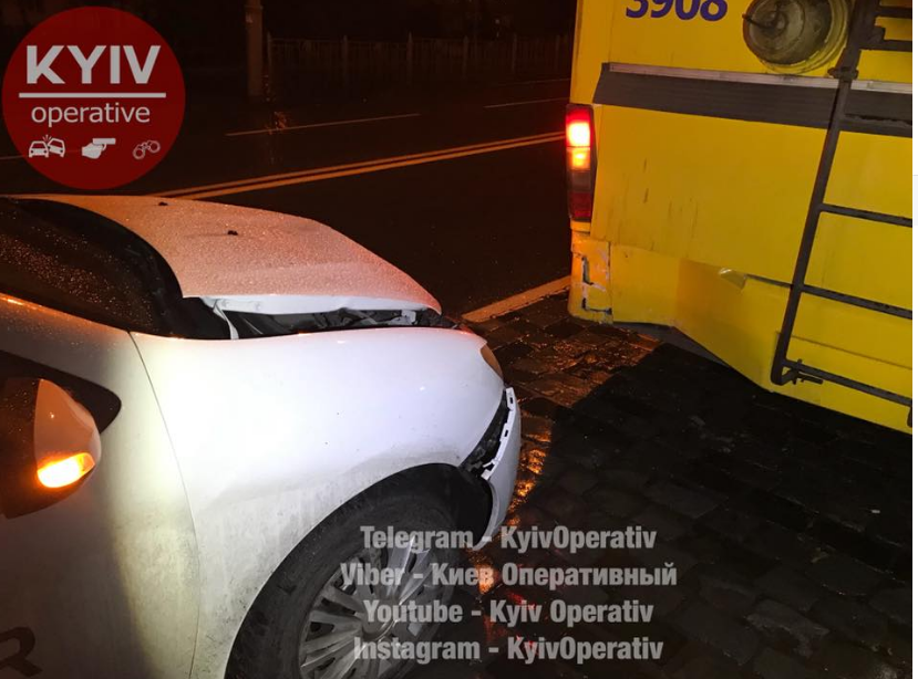 В Киеве произошло ДТП с участием такси Uber и троллейбуса. Об этом в Facebook сообщает "Киев Оперативный".