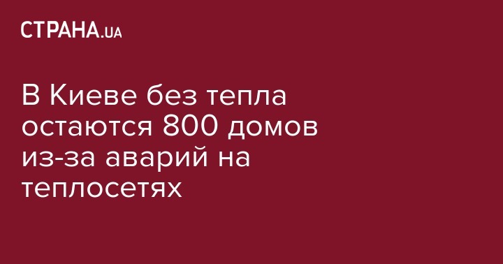 Председатель Киевской городской государственной администрации Виталий Кличко заявил, что 800 домов в Киеве остаются без теплоснабжения из-за аварий на теплосетях.