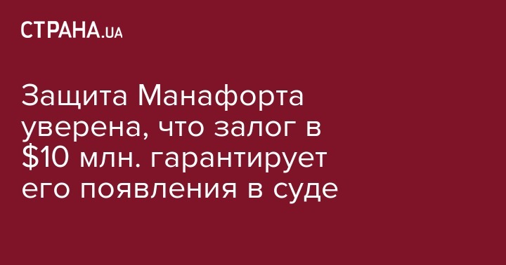 Адвокат экс-главы предвыборного штаба президента США Дональда Трампа - Пола Манафорта, которому в понедельник были предъявлены обвинения по 12 пунктам, убежден, что назначенный судом залог в $10 млн и домашний арест гарантируют его явку в суде в назначенные сроки.