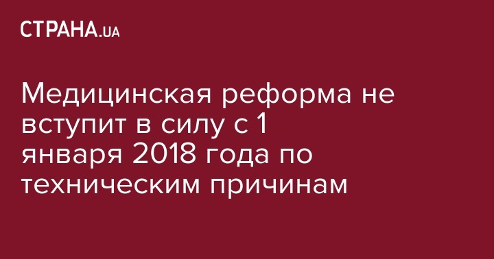 Новую, еще не вступившую в силу, но уже скандальную медицинскую реформу не запустят с 1 января 2018 года. Об этом передает Интерфакс-Украина со ссылкой на заместителя министра здравоохранения Павла Ковтонюка.