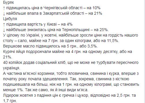 В Донецкой области сразу на 4 социальных продуктов цены выросли наибольшими темпами. В Киеве и Житомирской наиболее выросла цена на 3 наименования социальных продуктов, в Закарпатской и Черкасской облостях  - по 2 наименования.