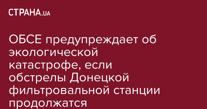 ОБСЕ предупреждает об экологической катастрофе, если обстрелы Донецкой фильтровальной станции продолжатся
