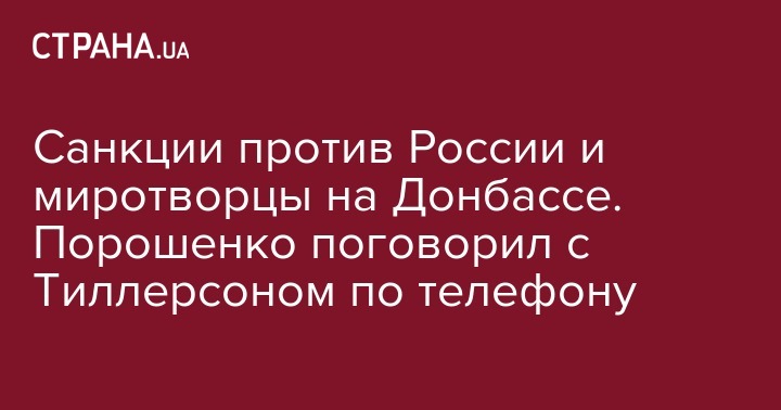 Санкции против России и миротворцы на Донбассе. Порошенко поговорил с Тиллерсоном по телефону
