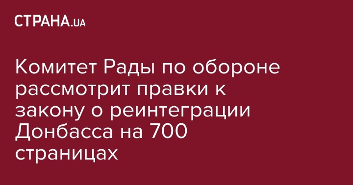 Комитет Рады по обороне рассмотрит правки к закону о реинтеграции Донбасса на 700 страницах