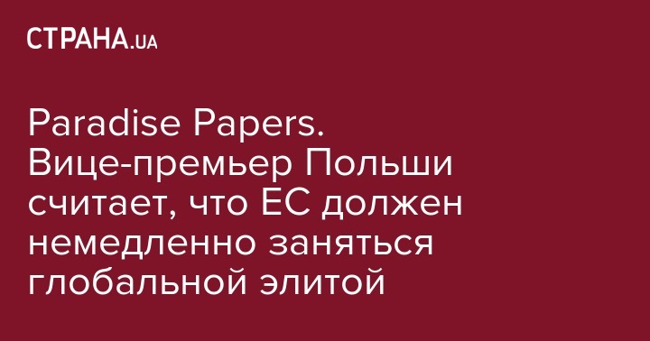 "Обнародование международной группой журналистов-расследователей "Райских бумаг" показывает, что проблема "налогового рая" и участие глобальной элиты в укрывательстве своего имущества перед национальными налоговыми органами является глобальной проблемой, которая касается власти и бизнеса", - заявил Моравецкий.