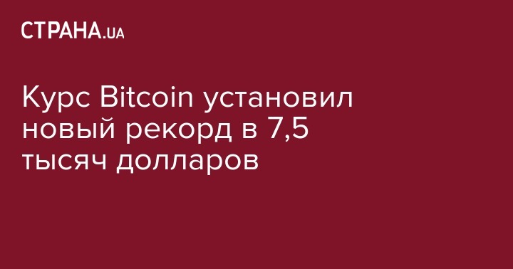 Средневзвешенный курс криптовалюты Bitcoin преодолел отметку в 7,5 тысяч долларов, установив новый рекорд. Об этом сообщает ПРАЙМ со ссылкой на данные биржи.