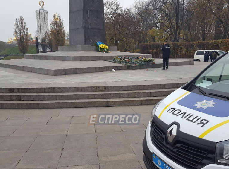 Полиция сразу прибыла на место происшествия. Было выявлено 8 ведер, в которых, скорее всего, нарушители принесли раствор цемента", - говорится в заявлении КГГА.