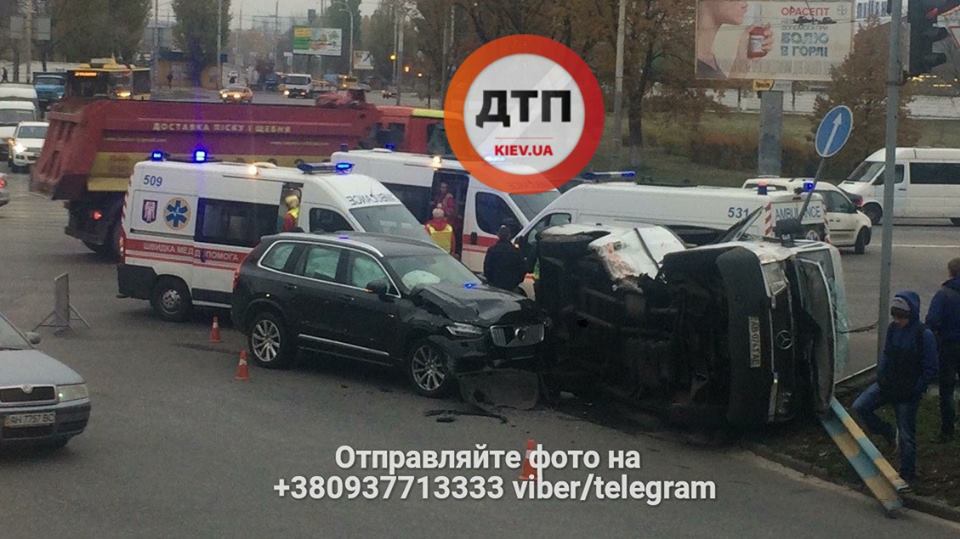 "Утро начинается не с кофе: серьезное ДТП с пострадавшими в Киеве на Богатырской, неподалеку от Героев Днепра: Volvo опрокинул микроавтобус Mercedes Sprinter", - говорится в сообщении.