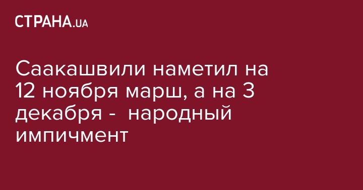 Экс-председатель Одесской облгосадминистрации, лидер партии "Движение новых сил" Михаил Саакашвили инициирует на воскресенье, 12 ноября, марш с требование принятия законопроектов об импичменте президента и антикоррупционном суде.