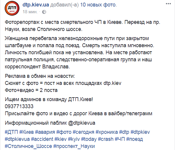 Об этом на Facebook-странице сообщает портал dtp.kiev.ua.