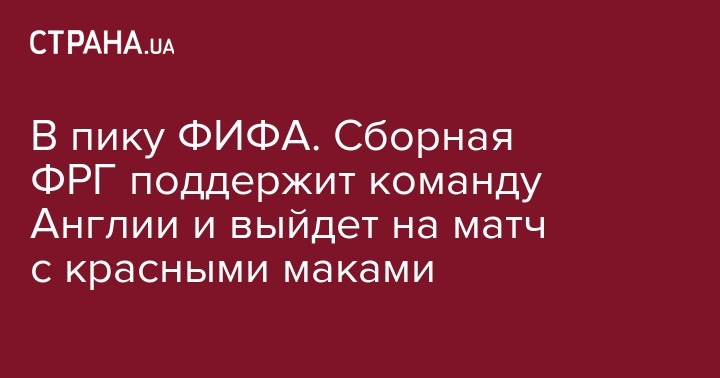 Чемпионы мира по футболу, сборная ФРГ, решили пойти наперекор функционерам ФИФА и поддержать сборную Англии в товарищеском матче. Бундестим выйдет на поле с красными маками на футболках.