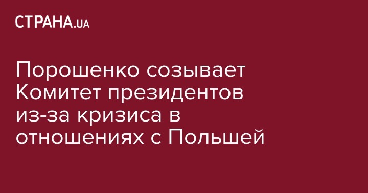 "Для укрепления стратегического партнерства между Украиной и Республикой Польша, и чтобы избежать дальнейшую эскалацию напряжения, осознавая необходимость решения любых проблемных вопросов в двусторонних отношениях исключительно в цивилизованный европейский способ, президент Украины Петр Порошенко инициировал проведение чрезвычайного заседания Консультационного Комитета президентов Украины и Польши", - сообщил пресс-секретарь Порошенко.