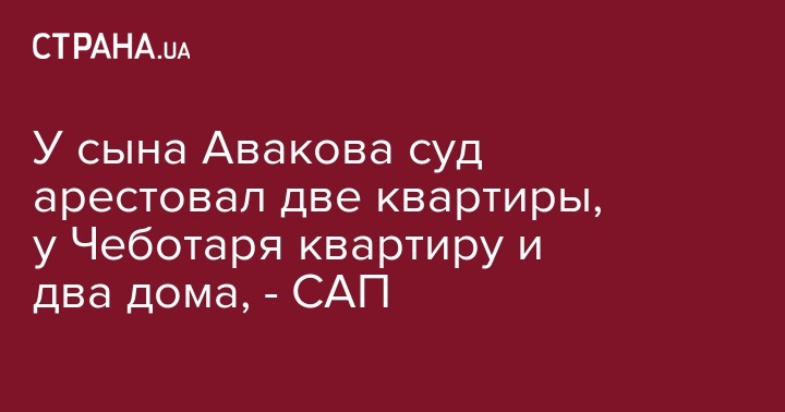 У сына Авакова суд арестовал две квартиры, у Чеботаря квартиру и два дома, - САП