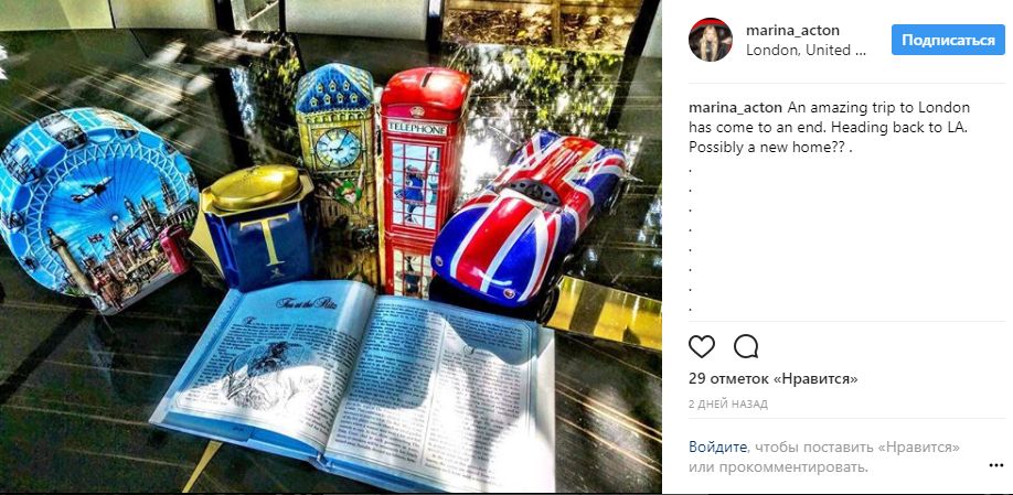 В Instagram Марина два дня назад писала о том, что подходит к концу ее поездка в Лондон. В информации о себе у нее стоит ссылка на публикацию о покупке все того же дома – видимо, украинка никак не может нахвастаться покупкой.