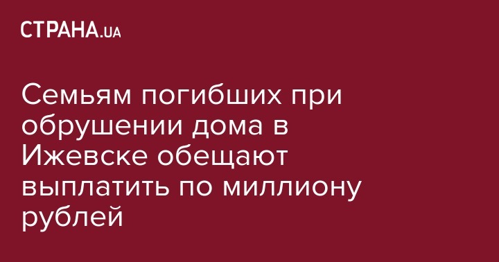 Власти Удмуртии пообещали выплатить семьям погибших при обрушении подъезда многоэтажного жилого дома в Ижевске по 1 млн рублей. Об этом сообщает "Газета".