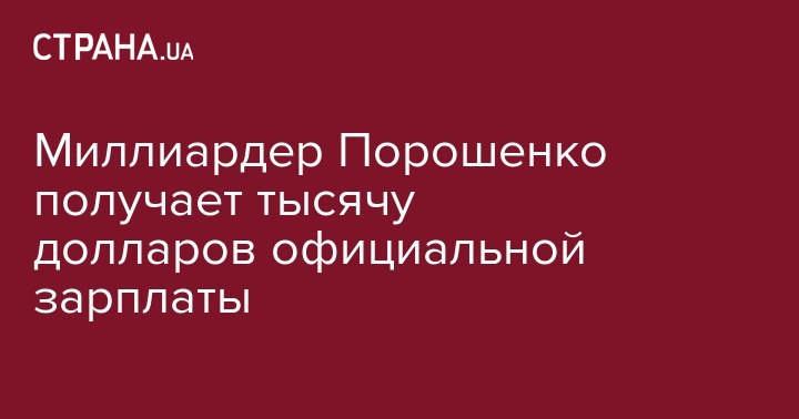 Официальная зарплата президента Петра Порошенко в октябре составила всего 28 тысяч гривен или около тысячи долларов США. Об этом в его администрации сообщили на запрос "Украинских новостей".