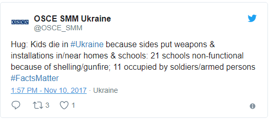 "По нашим наблюдениям 22 учебных заведения размещены вблизи позиций или укреплений вооруженных формирований. Например в подконтрольной т.н."ДНР" Саханке мы видели траншеи за школой", – заявил он.