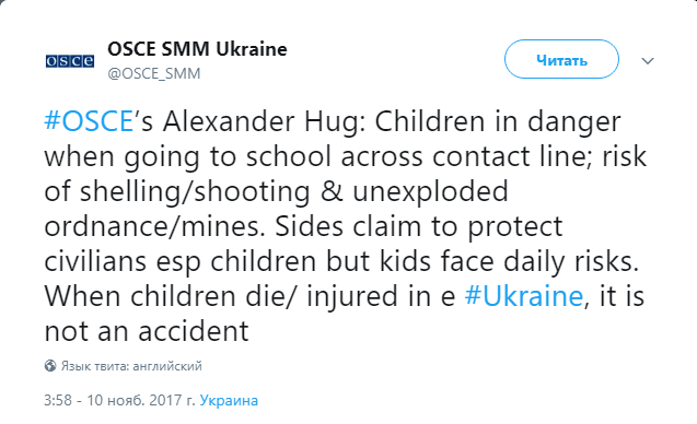 "Отличить гражданские объекты от позиций становится сложно. Использование гражданских объектов как щита надо осуждать. Но когда таким щитом выступают дети, это заставляет задуматься, осталось ли у этих людей хоть немного здравого смысла", – сказал Хуг.