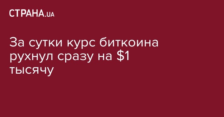 За сутки курс биткоина рухнул сразу на $1 тысячу