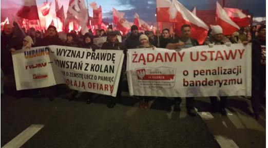 В марше принимают участие десятки тысяч человек с националистическими взглядами. На баннерах, которые принесли поляки, упоминалась и Украина. На плакатах говорилось, что Польша требует наказать сторонников Степана Бандеры и требует от Украины признать правду.