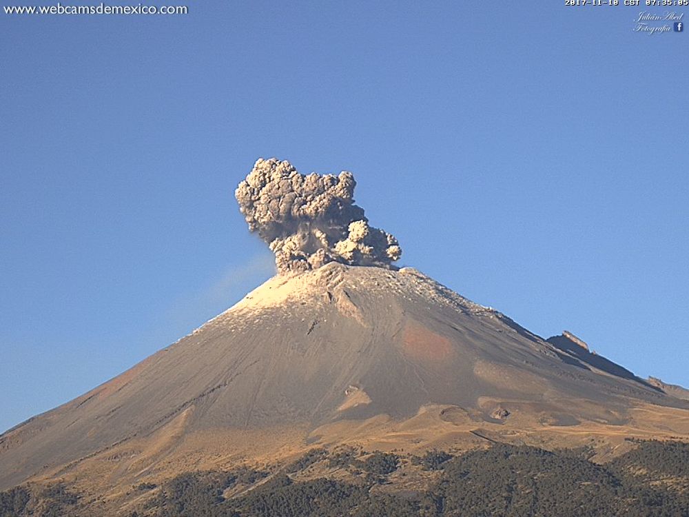 Вулкан Попокатепетль с конца сентября периодически совершает низкоинтенсивные извержения.