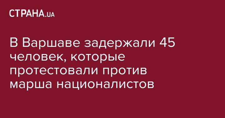 Полиция Варшавы задержала 45 протестующих против "Марша независимости", который сегодня проводили националисты. Об этом сообщает "Укринформ".