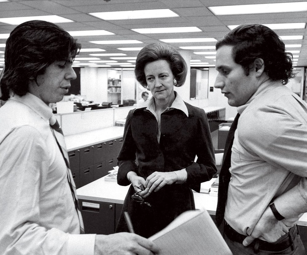 Кэтрин Грэм с репортерами Карлом Бернстином и Бобом Вудвордом Фото: bestin.ua