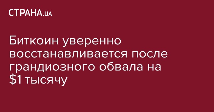 Биткоин уверенно восстанавливается после грандиозного обвала на $1 тысячу