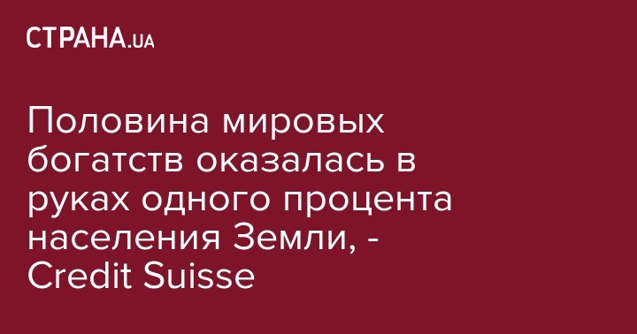 Половина мировых богатств оказалась в руках одного процента населения Земли, - Credit Suisse