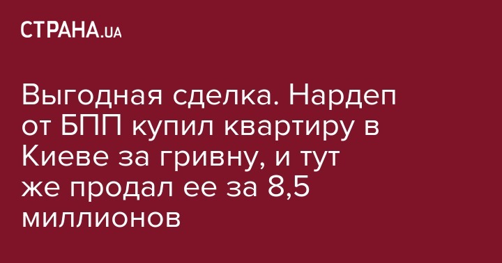 Выгодная сделка. Нардеп от БПП купил квартиру в Киеве за гривну, и тут же продал ее за 8,5 миллионов