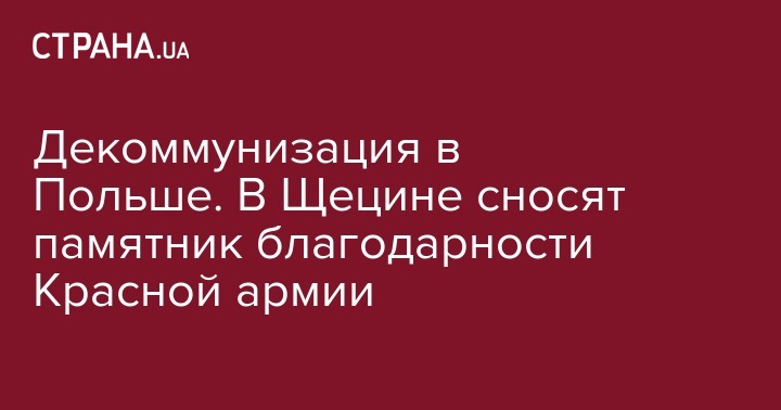 Декоммунизация в Польше. В Щецине сносят памятник благодарности Красной армии