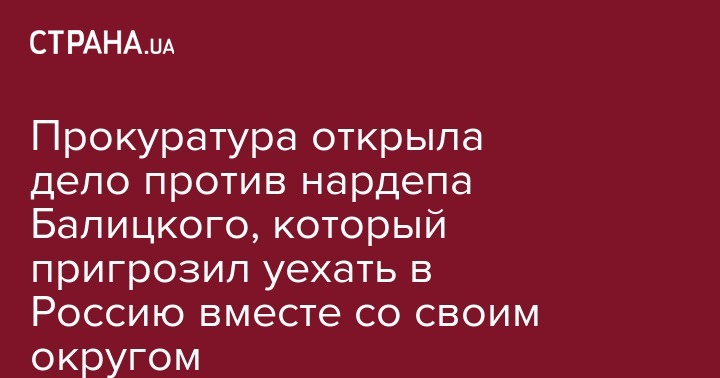 Прокуратура открыла дело против нардепа Балицкого, который пригрозил уехать в Россию вместе со своим округом