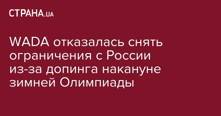 WADA отказалась снять ограничения с России из-за допинга накануне зимней Олимпиады
