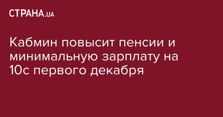 Кабмин повысит пенсии и минимальную зарплату на 10% с первого декабря