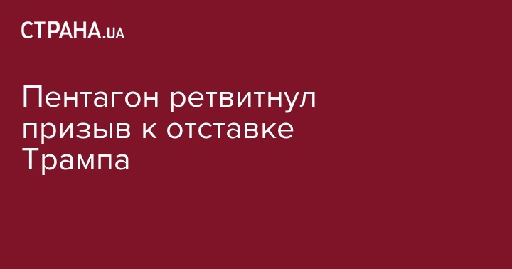 Официальный аккаунт министерства обороны США в Twitter по ошибке репостнул призыв к отставке Дональда Трампа. Об этом после инцидента сообщила в микроблоге представитель Пентагона Дана Вайт.