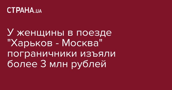 В четверг, 16 ноября пограничники в поезде "Харьков - Москва" в Харьковской области задержали гражданку РФ, которая при проверке документов вела себя нервозно. У нее нашли и изъяли 3 400 000 рублей .