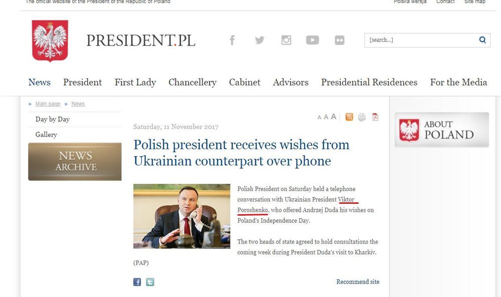 Пресс-служба президента Польши Анджея Дуды оконфузилась, перепутав несколько раз имя президента Украины Петра Порошенко, заменив его на Виктор.