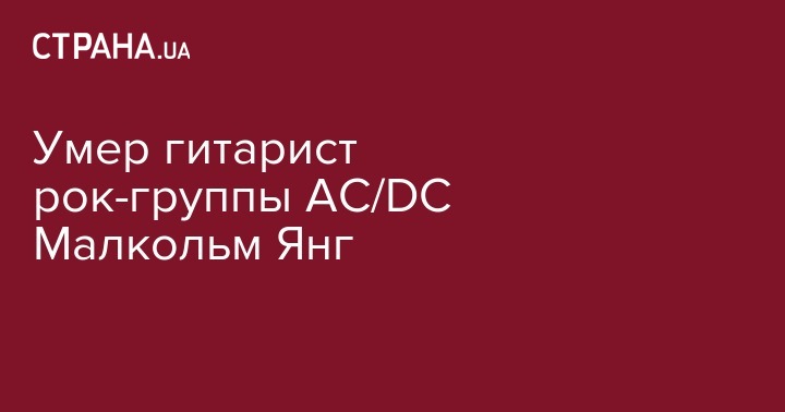 В семье братьев Янг, создателей знаменитой рок-группы АС/DC очередная утрата. После смерти в октябре старшего брата Малкольма и Ангуса Янгов - Джорджа, бывшего продюсером группы, в мир иной отошел и гитарист группы Малкольм Янг.